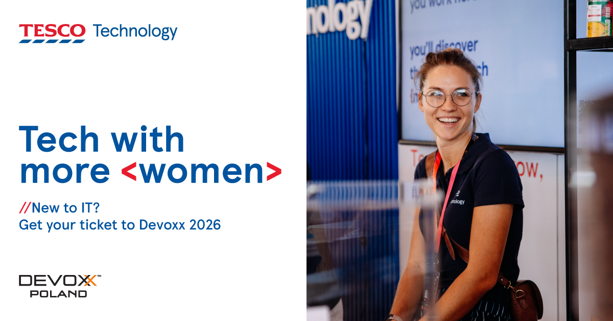 Zespół Tesco Technology wierzy, że różnorodność wspiera innowacyjność i z dumą wspiera kobiety, które stawiają pierwsze kroki w branży technologicznej. Dołącz do konkursu Tech with more <women>, aby wygrać jeden z 20 darmowych biletów na konferencję Devoxx Poland 2026 w Krakowie. Wystarczy, że do 8 maja odpowiesz na dwa pytania w formularzu konkursowym na stronie: https://bit.ly/tech-with-more-women-Tesco-Technology